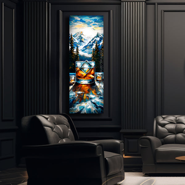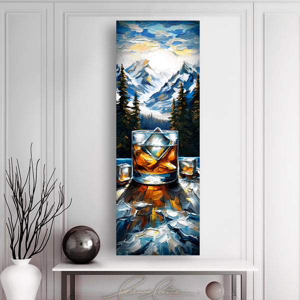 In whiskey's gaze and mountains high, where courage meets the painted sky. Amidst the fear, excitement flows, new adventures, like whiskey, glows. - Inspired, motivated, scared, yet excited. Even mountains cannot stand in your way while you set out on adventure, conquering your next bold journey. Take a risk, indulge in the reward.